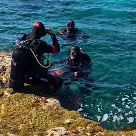 After the theoretical part, you'll go into the water to experience the real Baptism of the Sea: a gentle, guided dive to a maximum depth of 5 meters, ideal for enjoying the experience in complete peace and safety.